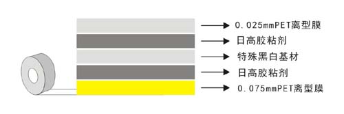 采用黑白特殊基材涂以丙烯酸酯類的膠粘劑,具備遮光及反射功能。有多種厚度供選擇。